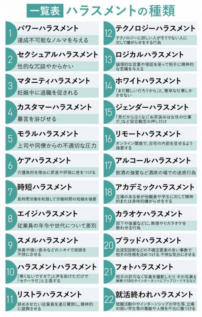【一覧表】ハラスメントの種類