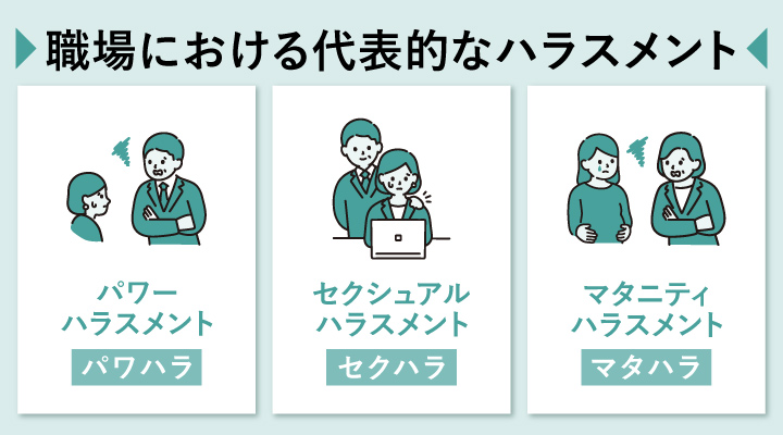 特に企業が優先して押さえるべきは、パワハラ・セクハラ・マタハラです。加えて、顧客等からの著しい迷惑行為(カスハラ)も現場負担が大きく、対策が急務になります。